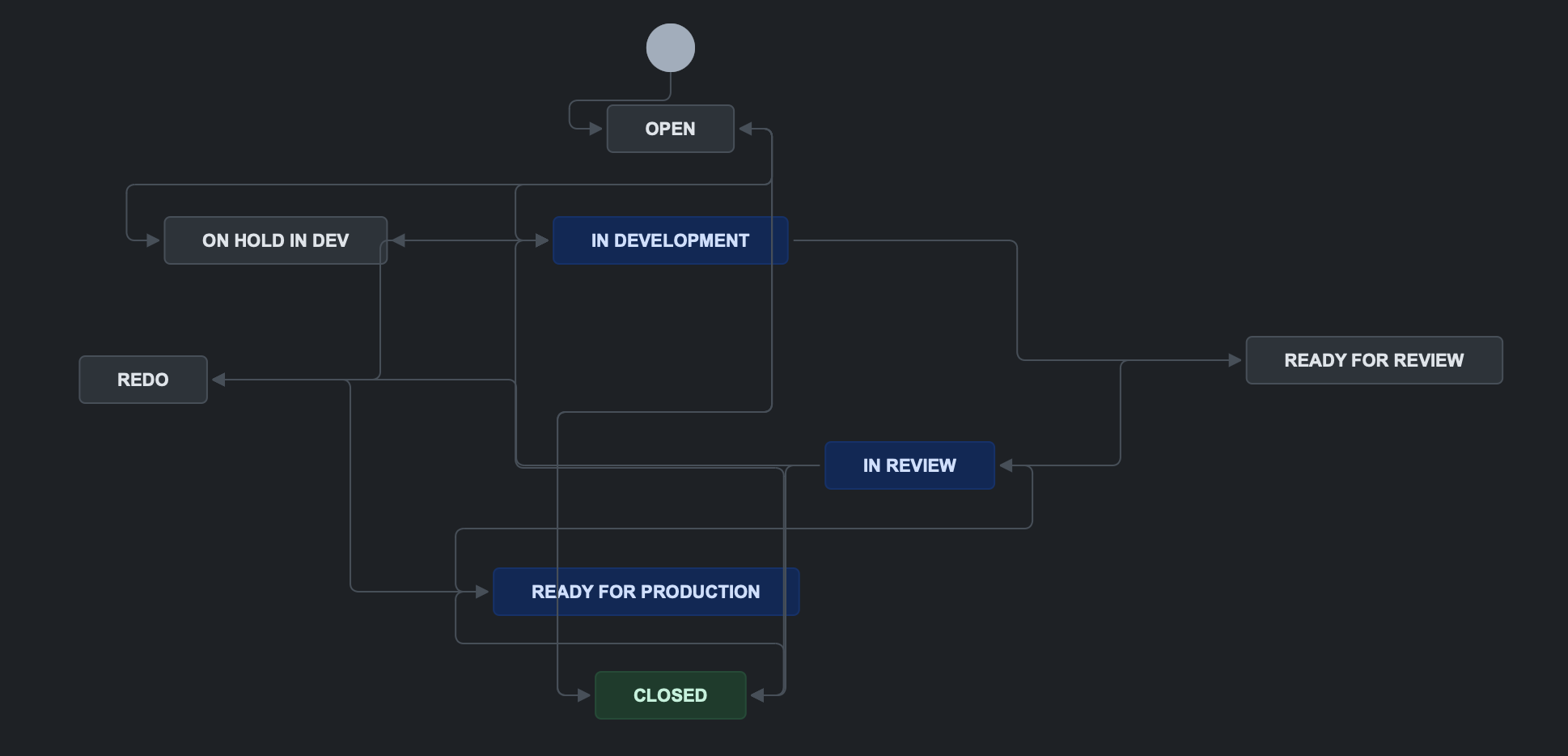 - On the Epic of the current issue , the first applicable transition from this list will be triggered: