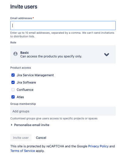 Als je een gebruiker uitnodigt met een ander e-mailadres dan het e-mailadres van zijn of haar Atlassian-account, en ze uiteindelijk een nieuw Atlassian-account maken, kunnen ze de twee accounts niet combineren. Je moet de gebruiker opnieuw uitnodigen met zijn oorspronkelijke account en de toegang voor het andere account verwijderen. Als ze inhoud maken terwijl ze zijn ingelogd met het tweede account, blijft die inhoud bestaan, maar blijft ze gekoppeld aan hun andere account.